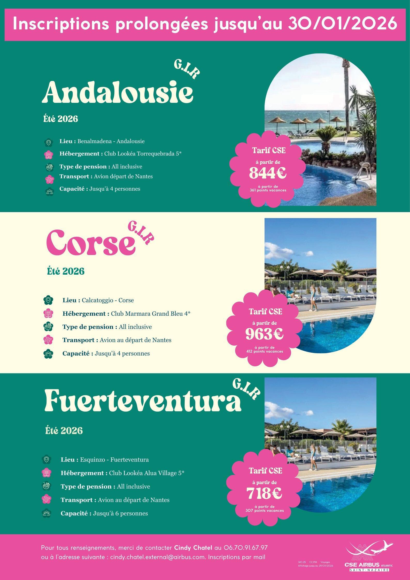 Les inscriptions G.I.R pour la Corse, Fuerteventura et l'Andalousie se poursuivent jusqu'au 30 janvier 2026. 🌴