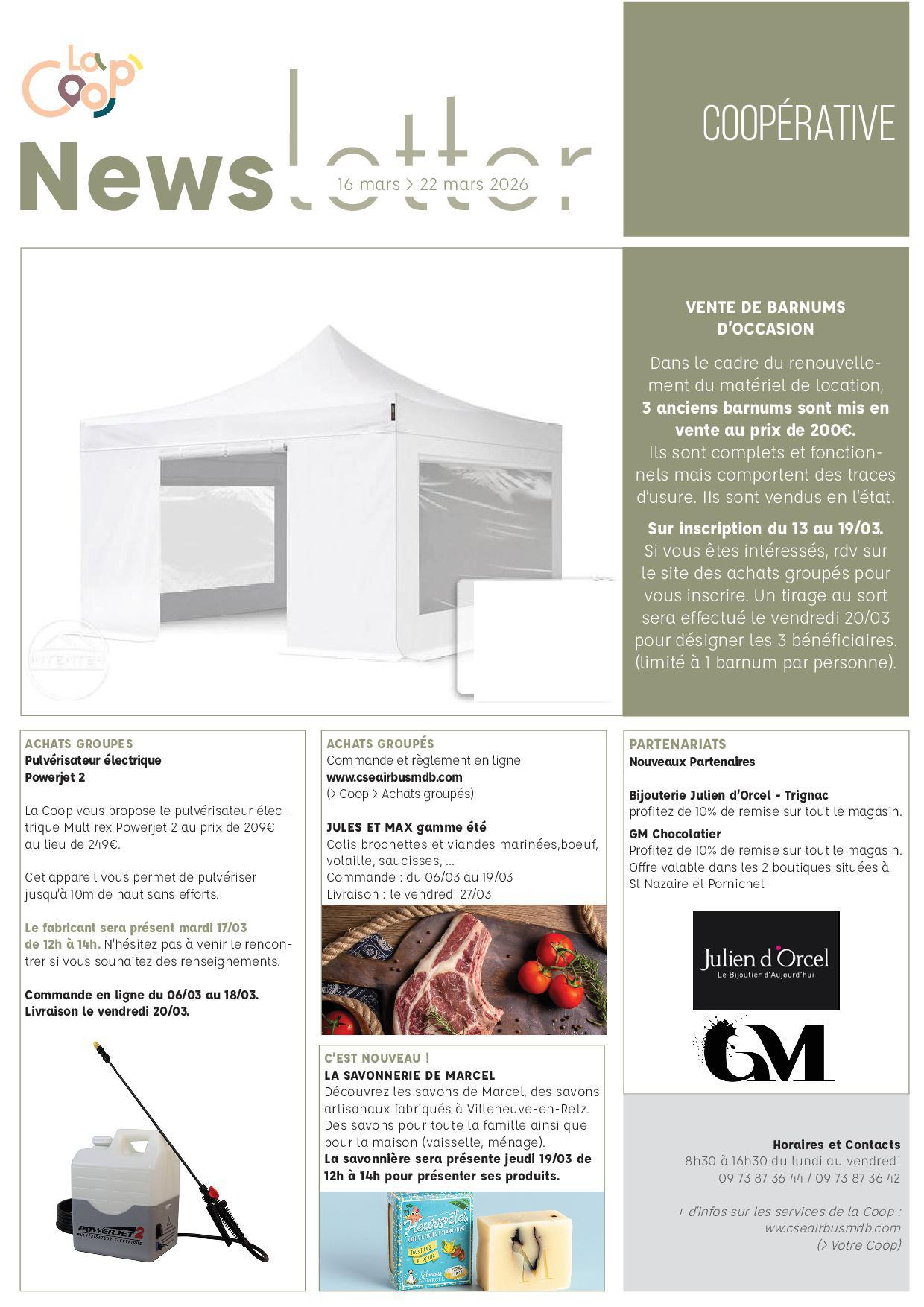 COOP'La coopérative vous propose une vente de barnums d'occasion au tarif de 200€ (sur tirage au sort).